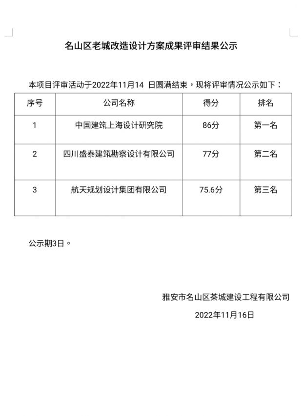 名山區(qū)老城改造設(shè)計(jì)方案成果評審結(jié)果公示
