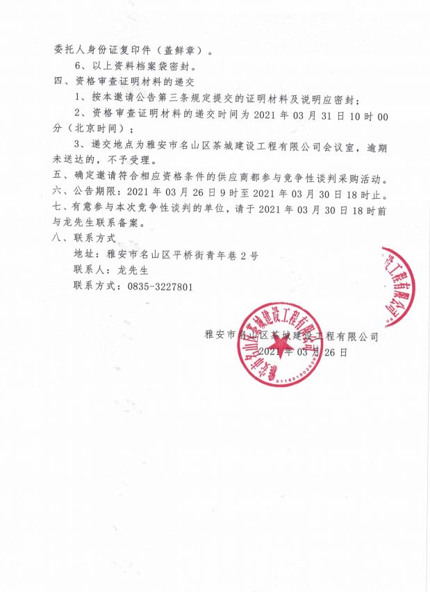 雅安市名山區(qū)皇茶大道安置房項目 護(hù)窗圍墻欄桿競爭性談判邀請公告